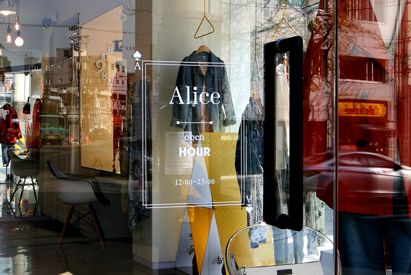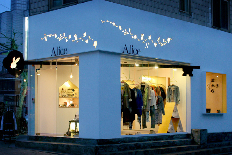 Alice Branding, Signage Alice Retail Shop Project Manager: Heeryoung Park Interior Design: Jinkyu Choi Branding & Signage: Kewyearn Chung Client: Jiyoon Kim Year: 2012 Related
